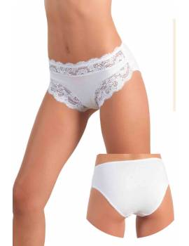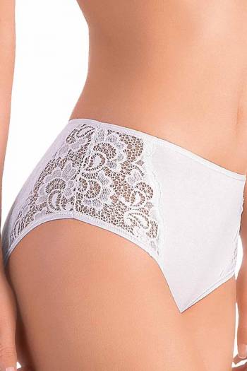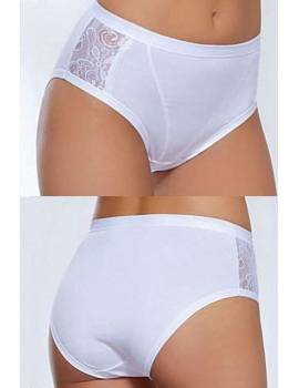 Высокие трусы для женщин из хлопка и модала. Комфортные трусики с кружевными вставками, отвечают всем санитарно-гигиеническим требованиям. Вставки из кружева по бокам. Отделка на поясе и по срезам из мягкой эластичной ленты, которая не передавливает тело. Состав: 45% cotone, 45% modal, 10% elastan Производитель Jadea Италия.