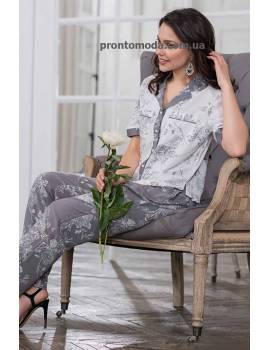 Домашний комплект Mia-Mella Collett 6556: блуон с коротким втачным рукавом и застежкой на пуговицы. Классические брюки прямого кроя с боковыми карманами и поясом на резинке....