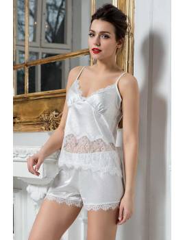 Mia-Mia комплект для сна Mirabella 2072 Комплект женский для сна из двух предметов: удлиненный топ прилегающего силуэта на тонких регулируемых бретелях и шорты на поясе-резинке. Сорочка выполнена из атласного шелка в белом и черном цвете с отделкой из кружева. Состав: 100% полиэстер. Производитель Mia-mia Италия.