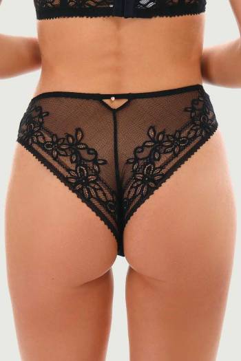 Трусики бразилиана из базовой коллекции Lormar SATEN. Трусы с заниженной линией талии. Выполнены из из эластичного полупрозрачного тюля и кружева. Верхний срез обработан тонкой...