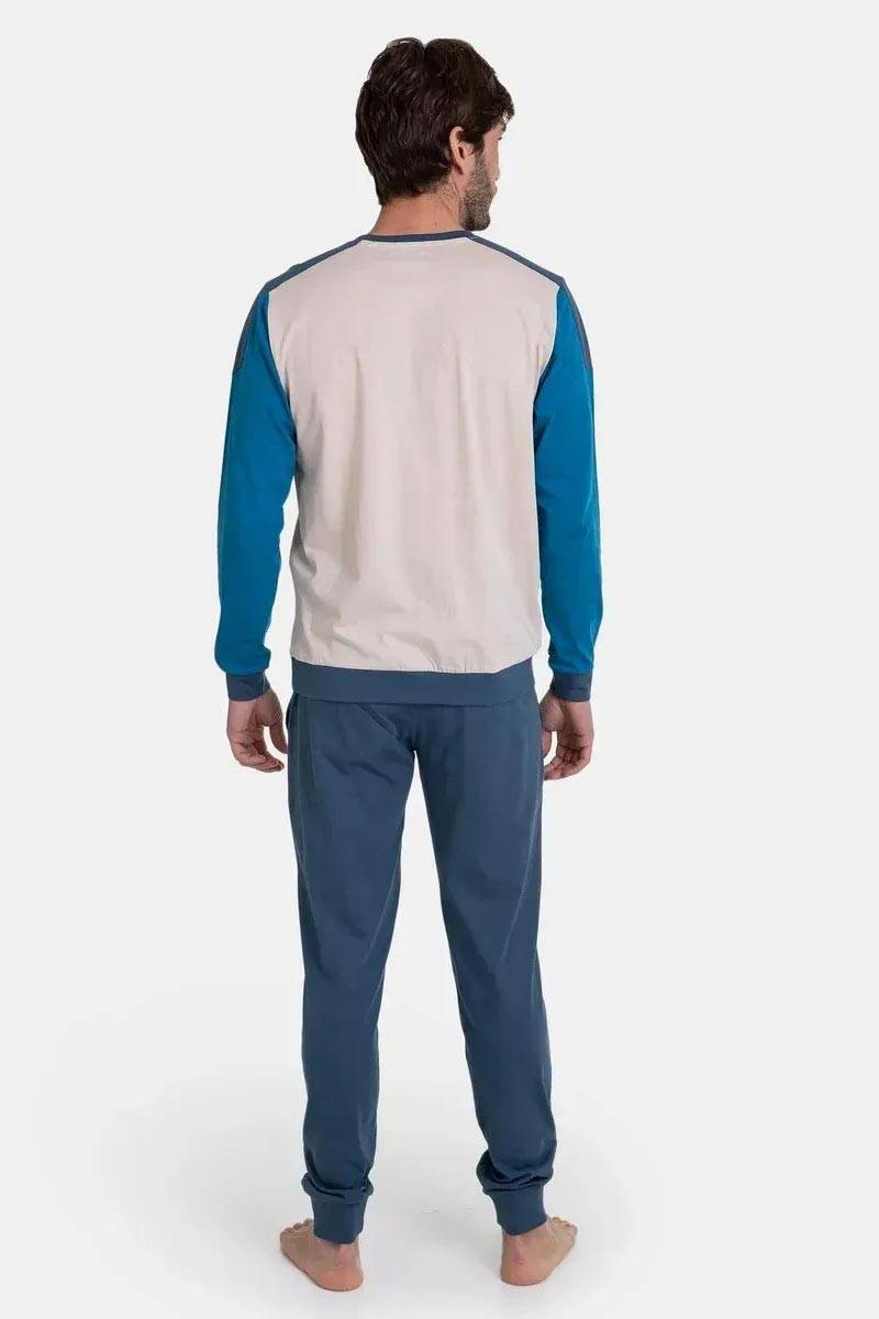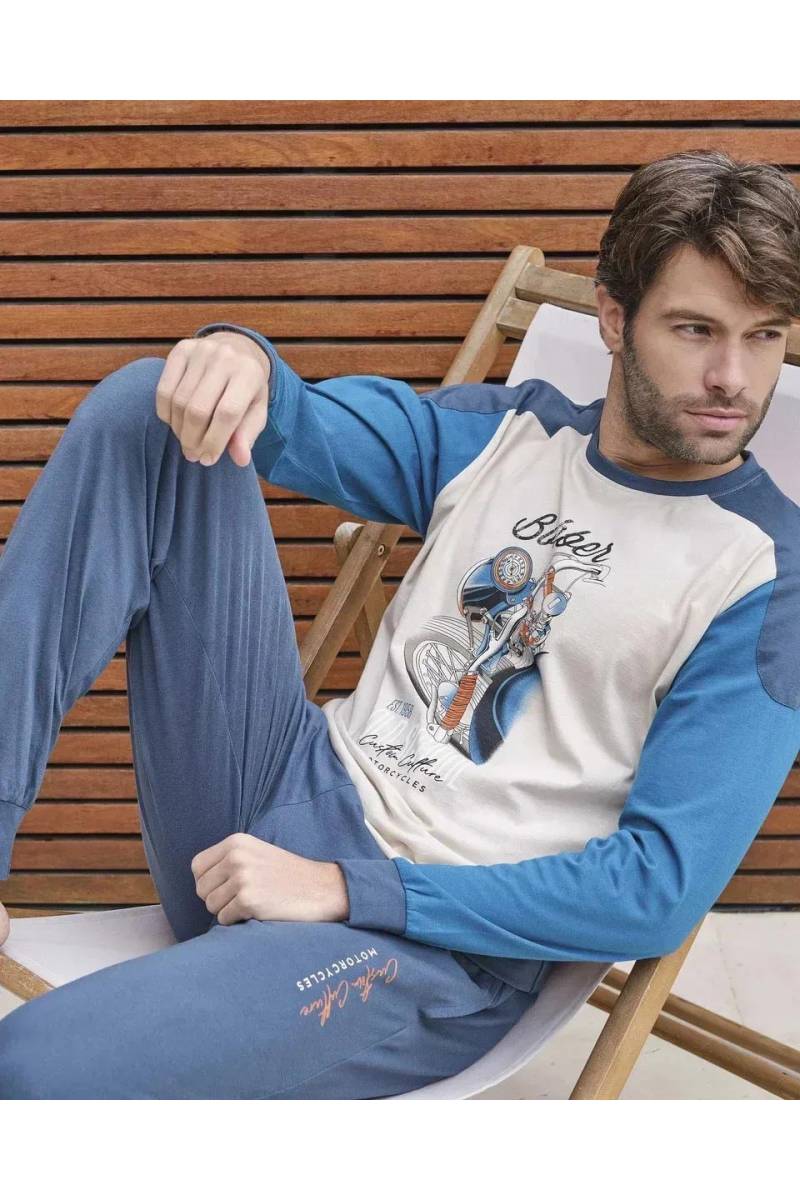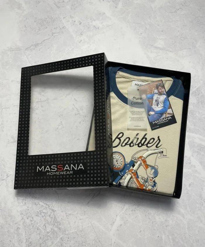 Мужской пижамный комплект от испанского бренда Massana. Комплект из двух предметов изготовлен из качественного и мягкого хлопка: Джемпер с длинными рукавами и V-образным вырезом горловины. Передняя панель украшена оригинальным принтом. Комфортные брюки с мягкой резинкой в поясе и удобными боковыми карманами, штанины на манжетах. Удобный комплект не сковывает движений, подарит вам домашний комфорт и тепло. Изделие можно использовать для сна и для домашнего отдыха. Упаковка - фирменная коробка. Состав: 100% хлопок. Бренд Massana Испания.