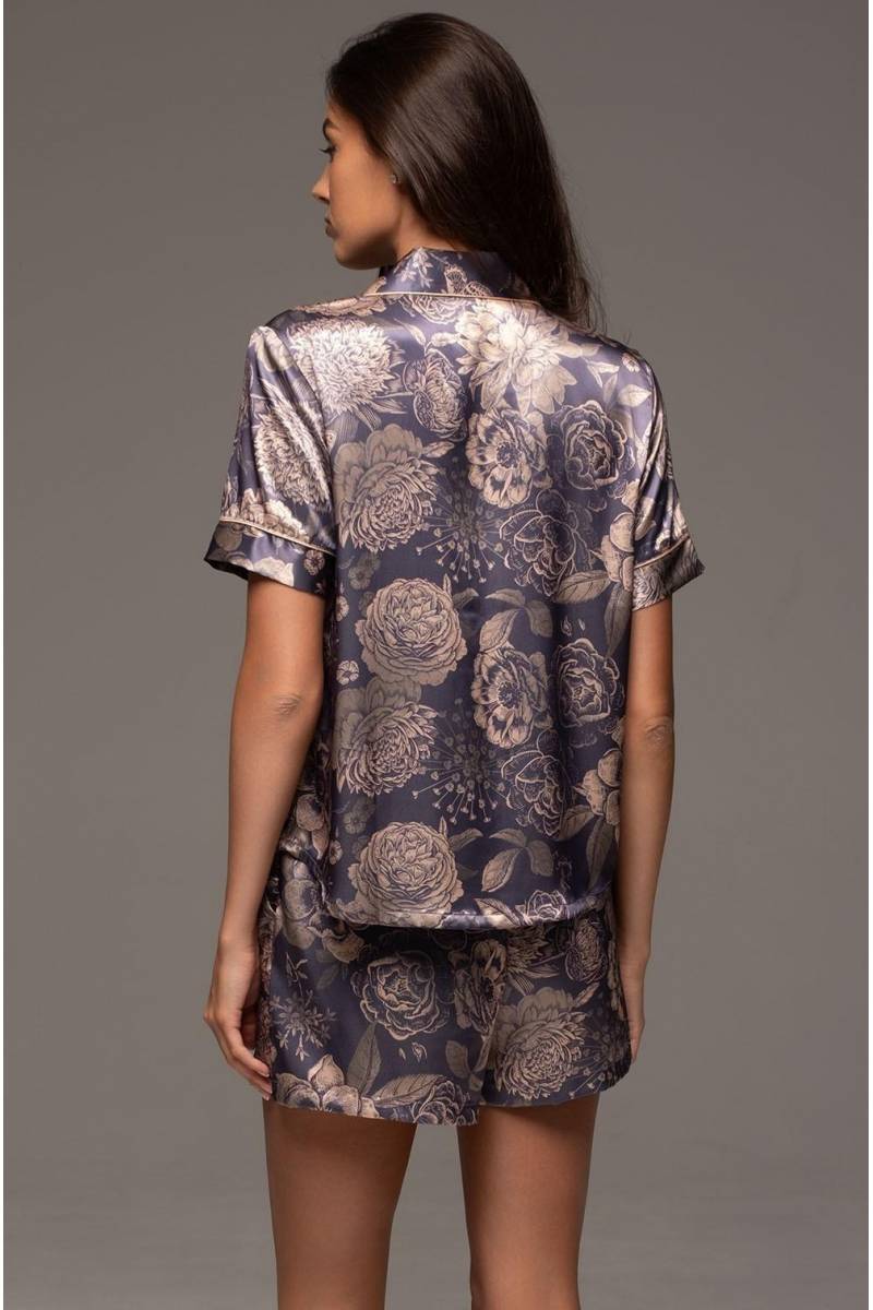 Женский домашний комплект от итальянского бренда Mia-Amore коллекции Giaconda: Жакет прямого кроя с застежкой на пуговицы. Воротник с лацканами пиджачного типа. Короткие рукава с декоративными манжетами. Полочка оформлена карманом. Шорты с комфортным поясом на резинке. Комплект из принтованного смесового шелка на натуральной основе с отделкой узким кантом. Состав 70% натуральный шёлк, 25% полиэстер, 5% эластан. Бренд Mia-Amore Италия.