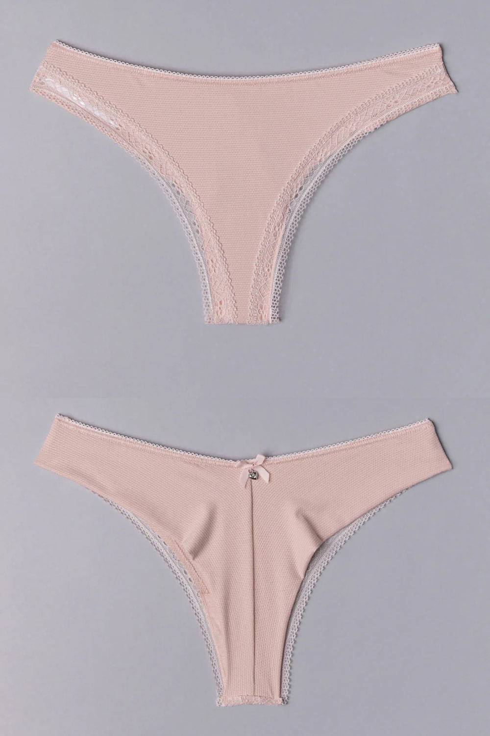 Трусики бразилиана SieLei Darling с заниженной линией талии выполнены из жаккардовой ткани с изысканным сотовым переплетением и декорированы кружевной тесьмой и атласным бантиком с миниатюрной подвеской в форме сердечка, что делает их настоящей жемчужиной нижнего белья, способной подчеркнуть женственность и утончённость. Задняя деталь с центральным швом для оптимального прилегания по ягодицам. Трусики SieLei 1879 созданы для тех, кто ищет идеальный баланс между романтикой и комфортом. Подойдут как для повседневного использования, так и для дополнения более изысканного образа. Благодаря внутренней ластовице из 100% хлопка трусики обеспечивают воздухопроницаемость и комфорт при соприкосновении с кожей, сохраняя ощущение свежести в течение всего дня. Состав: Кружево: 88% полиамид - 12% эластан, Ткань: 85% полиамид - 15% эластан, Ластовица: 100% хлопок. Бренд SieLei Италия.