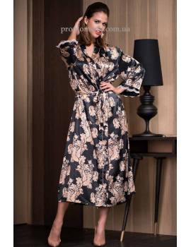 Колекція Mia-Amore Golden Flower. Довгий жіночий халат прямого крою на запах з поясом....