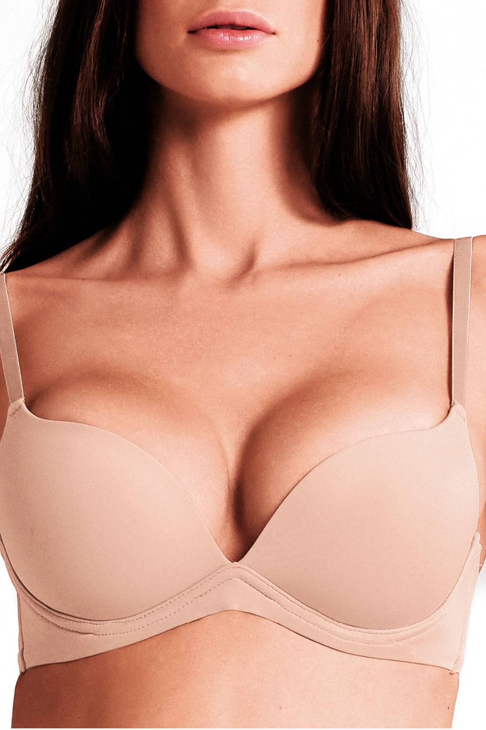 Унікальна конструкція - бюстгальтер без кісточок з косметичним ефектом пуш ап. Комфортна модель з глибоким декольте. Бюстгальтер візуально збільшує груди, формує ефектну улоговинку між грудьми, надає тілу бажаний рельєф. Відсутність травмуючих твердих деталей забезпечує максимальний комфорт при носінні. Бюстгальтер відмінно «тримає» груди - підтримка грудей здійснюється за рахунок особливого крою. Склад: Поліамід 89%, Еластан 11%. Внутрішня частина чашки бавовна. Бренд Lormar Італія.