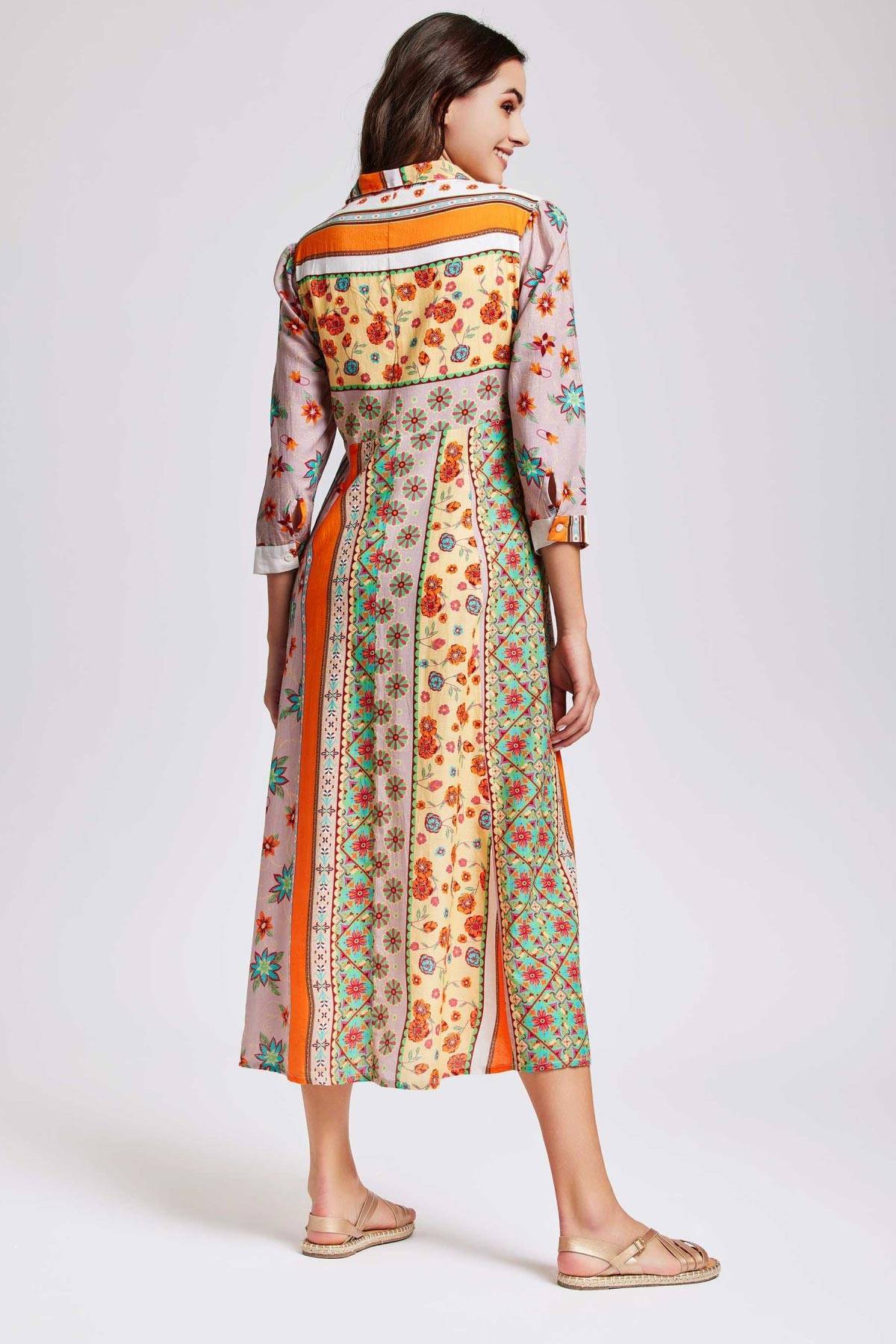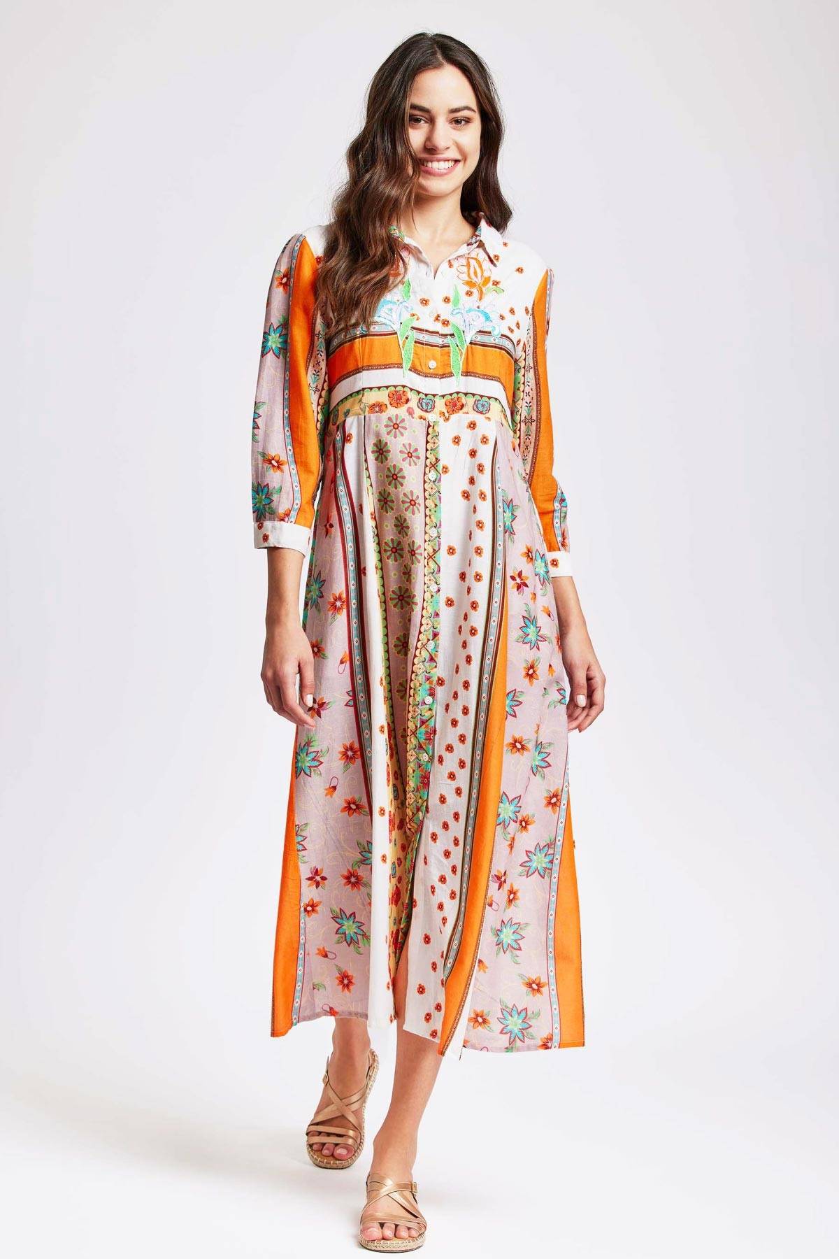 Стильня літня сукня від італійського бренду David. Довга сукня із застібкою на гудзики по всій довжині виробу. Рукави 3/4 довжини з вузькими манжетами на гудзиках. Комір сорочкового типу. Відрізний ліф прилеглого силуету. 100% бавовна та комфортний крій забезпечать вам свободу рухів, приємні тактильні відчуття та оптимальну терморегуляцію. А ідеальний принт для літнього відпочинку створить відчуття легкості, свіжості та жіночності, сформує яскравий, романтичний та невимушений образ, піднімаючи настрій та додаючи фарб повсякденності. Склад: 100% бавовна. Бренд David Італія.