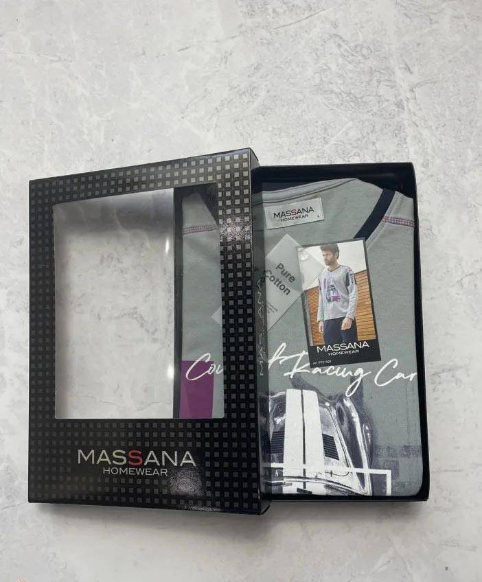Чоловічий домашній набір від іспанського бренду Massana. Кофта прямого крою з довгими рукавами з приспущеними плечима. Виріз горловини мисом оформлений контрастним кантом. Комфортні прямі штани на еластичному поясі регулюються в обсязі за допомогою шнурка. Низ штанин оброблений манжетами. Бічні шви із функціональними кишенями. Стильний комплект для комфортного відпочинку. Склад: 100% бавовна. Бренд Massana Іспанія.